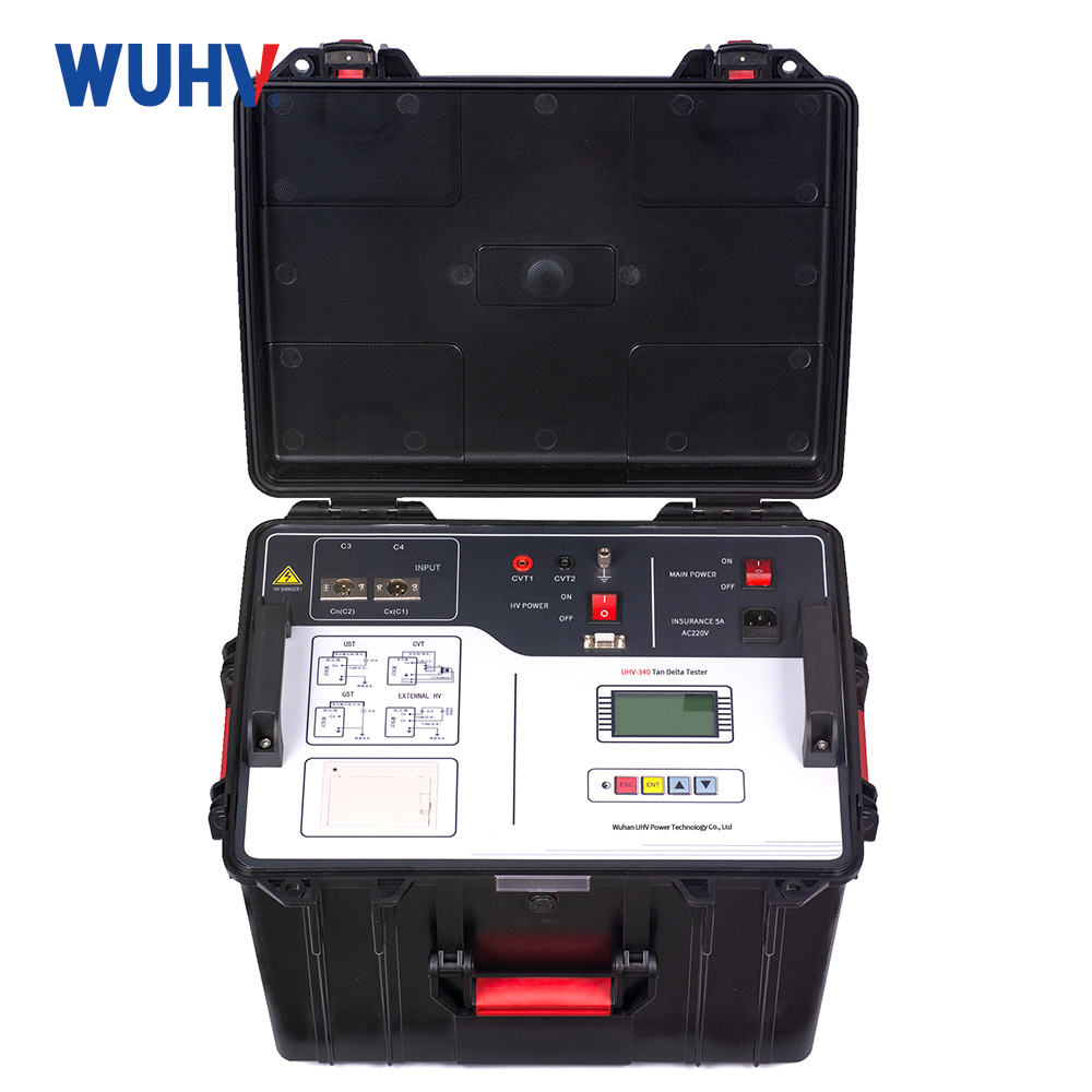 UHV-340 Transformer Tan Delta Tester is a kind of instrument with high precision fully automatic measuring the dielectric loss tangent and capacitance of various high voltage electrical equipments in the power plants and substations. The adoption of frequency conversion technology could ensure the accurate measurement in the interference of strong electric field.